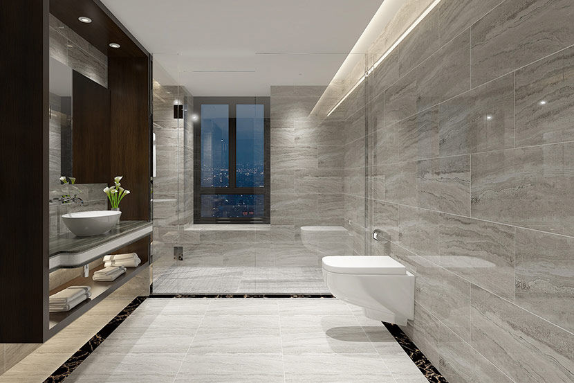 Tường bếp được thay bằng màu xám trắng sạch sẽ.