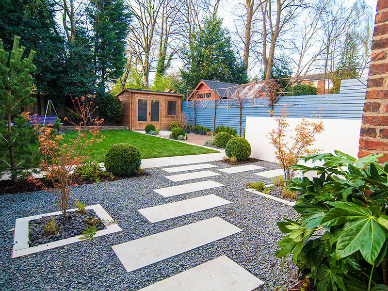 Chiều ngang của đường dạo phụ thuộc vào diện tích vườn, từ 0,9 m – 1,5 m. Bạn có thể trồng thêm cây to để tách bạch ranh giới và để trang trí vườn.