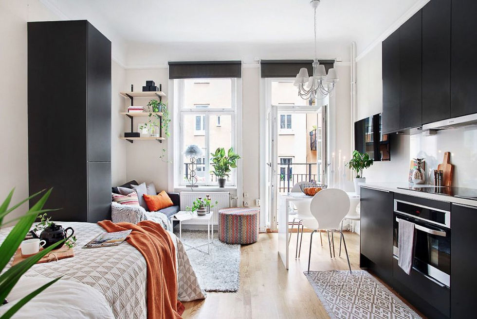 Đơn giản mà tinh tế, nội thất và không gian đem lại cái nhìn thật hoàn hảo. Giường ngủ được giấu trên tầng hai để tích kiệm không gian và giúp tầm nhìn thông thoáng hơn.