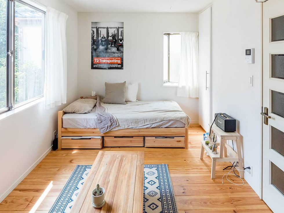 Tận dụng không gian bên dưới cửa sổ làm tủ đựng quần áo