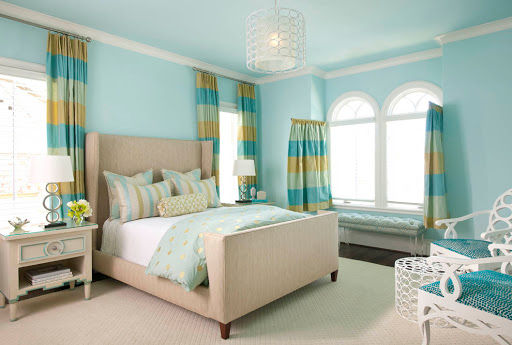 Xanh da trời là màu phổ biến trong phòng ngủ mang lại sự thanh thản và một cảm giác với bầu trời và vũ trụ.