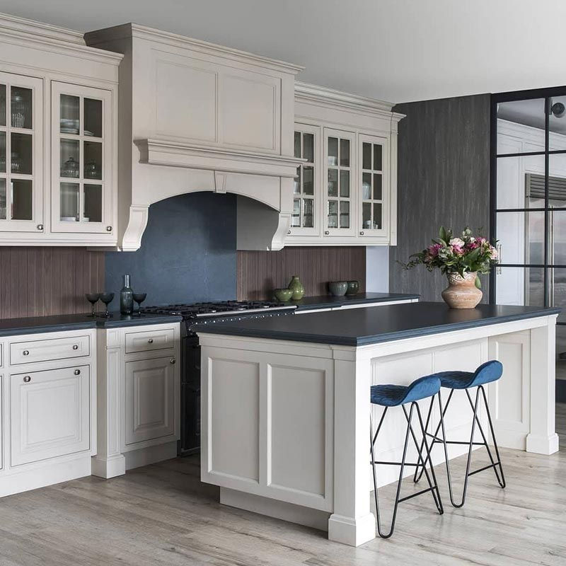Kệ mở và tủ gỗ màu trắng tạo cái nhìn cởi mở và thoáng mát trong nhà bếp nhỏ. Hãy trưng bày lên chiếc kệ này bộ bát đĩa hay những đồ trang trí tuyệt đẹp để giúp cho không gian nấu nướng thêm phần sinh động.